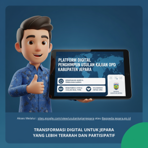 | Badan Perencanaan Pembangunan, Penelitian, dan Pengembangan Daerah (Bappeda) Kabupaten Jepara menghadirkan inovasi baru berupa Platform Digital Penghimpun Usulan Kajian OPD. Kehadiran platform ini bertujuan untuk mempermudah Organisasi Perangkat Daerah (OPD) dalam menyampaikan berbagai kebutuhan kajian sebagai dasar perencanaan pembangunan. Dengan sistem berbasis digital, proses pengajuan kini menjadi lebih efisien, transparan, dan terdokumentasi dengan baik.
